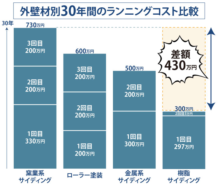 初期費用はやや高めですが、約30年間メンテナンス不要なため、長期的に見るとラクでおトクです。